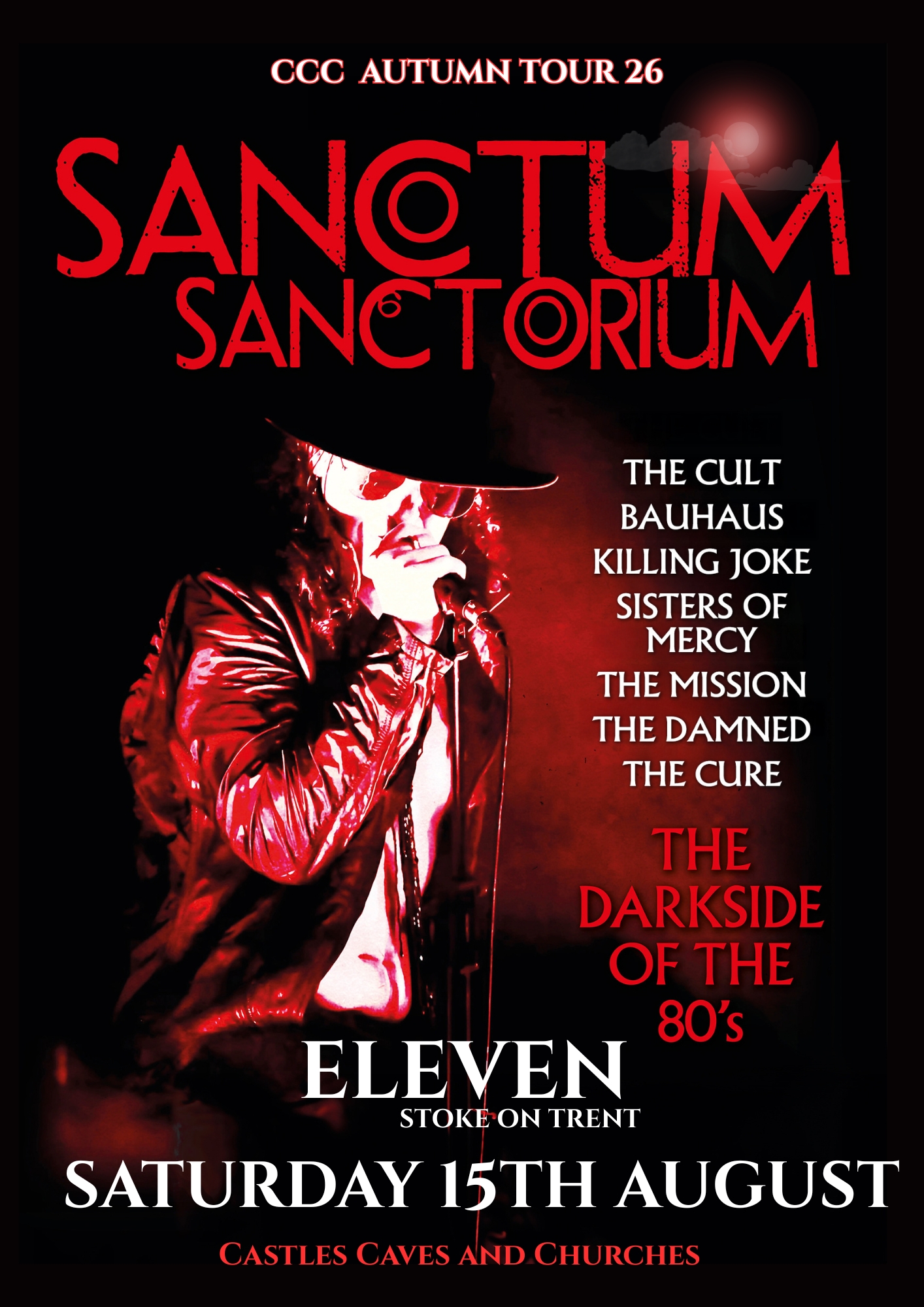 Formed through a mutual love of 80’s goth and alternative rock music. Sanctum Santorium are a live 6-piece band that faithfully recreate classic hits by artists such as The Cult, Killing Joke, Sisters of Mercy, Siouxsie & The Banshees, The Cure, Bauhaus and more. Smoke machines at the ready with the clothes and the attitude.
